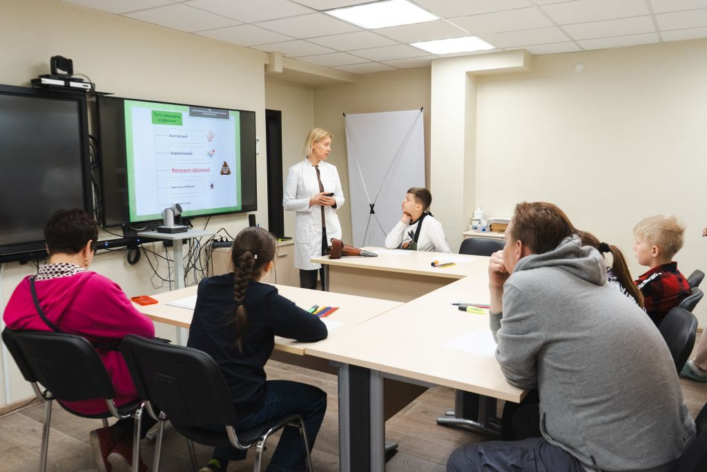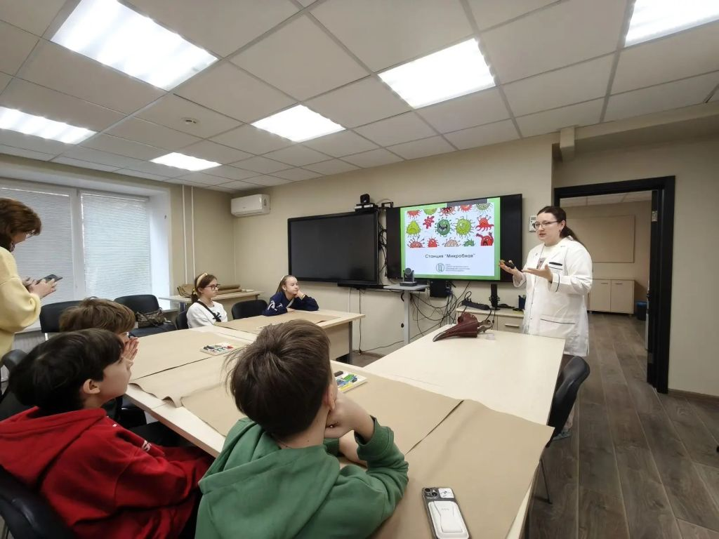 Врач-эпидемиолог И.А. Гаранина и врач-методист А.В. Шалунова на станции «Микробная» рассказали школьникам, какие опасности могут ждать человека, если он не будет соблюдать простые правила личной гигиены, например, забудет помыть руки перед едой. Поговорили о микробах, обитающих во внешней среде, и узнали способы защиты от них. Дети нарисовали и вылепили из пластилина микробов, а затем отправились мыть руки «по науке».