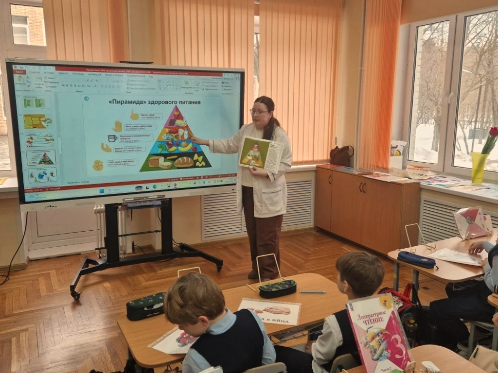 05 марта 2026 года в ФГБОУ «Средняя общеобразовательная школа №1699» Управления делами Президента Российской Федерации для учеников 3-го класса состоялся урок здоровья по теме: «Мой рацион – мой выбор здоровья». Мероприятие подготовила и провела врач по общей гигиене и эпидемиологии ФБУЗ «Центр гигиенического образования населения» Роспотребнадзора Ирина Андреевна Гаранина. Данные уроки направлены на формирование культуры здорового питания и осознанного отношения школьников к своему здоровью.