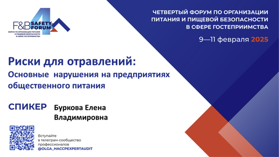10 февраля 2025 года специалист ФБУЗ «Центр Гигиенического образования населения» Роспотребнадзора, Буркова Е.В., приняла участие в форуме «Организация питания и пищевая безопасность в сфере гостеприимства», организованном Независимым центром сертификации и экспертизы «Хорекаэкспертгрупп» (руководитель Пасько О.В.)