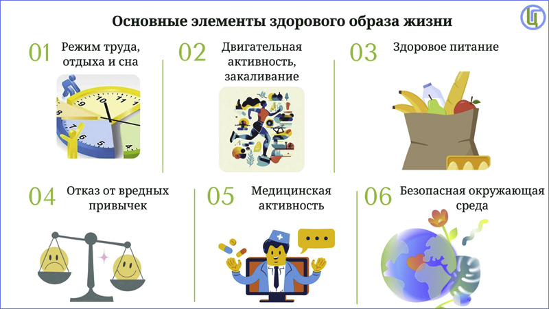 На уроке школьники давали определение здоровому образу жизни, дополняли уже имеющиеся знания о его компонентах: режиме дня, отдыха и сна, двигательной активности и закаливании, здоровом питании, отказе от вредных привычек, личной гигиене, медицинской активности.