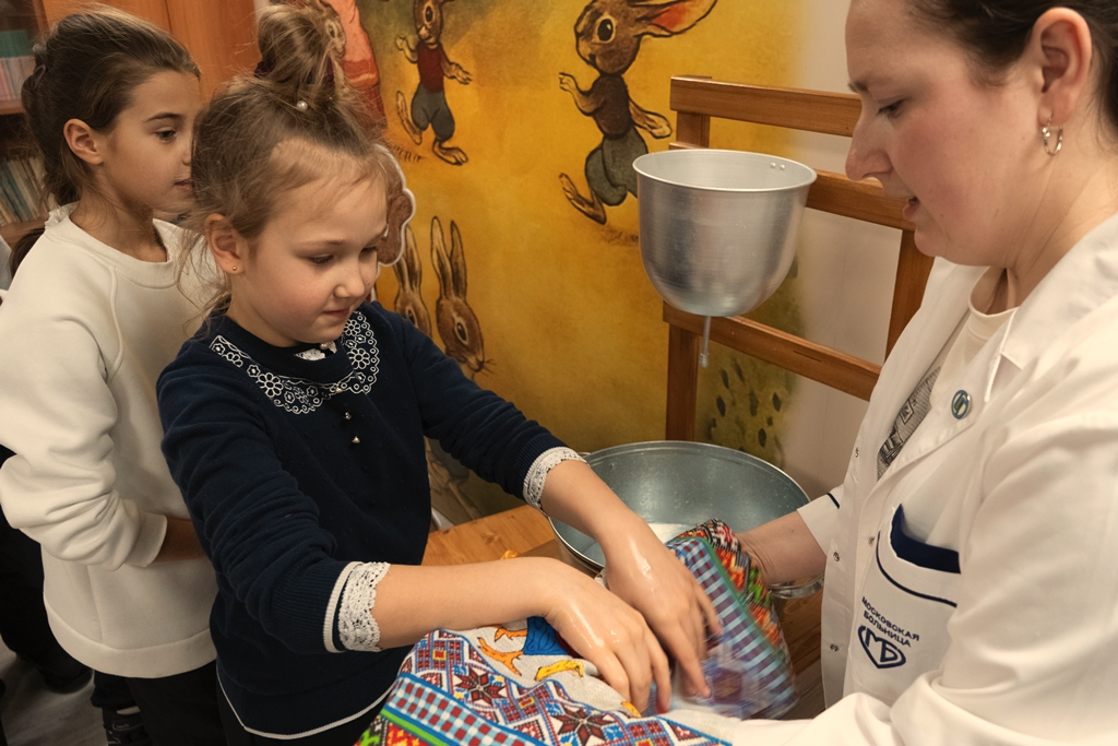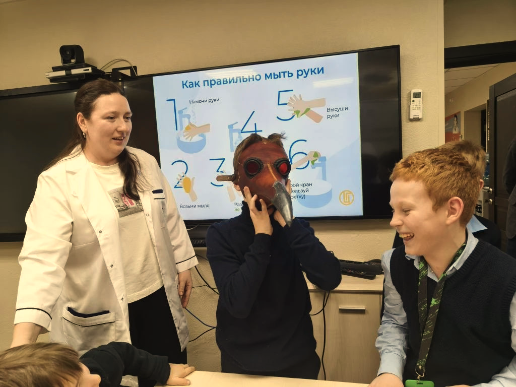 Дети узнали, что в 1957 году Центральный научно-исследовательский институт санитарного просвещения выпустил серию плакатов «Умные зверушки» с рисунками К.В. Зотова и стихотворениями Н.П. Найденовой. Они содержат рассказы о правилах здорового образа жизни и были выпущены специально для детей. Врачи И.А. Гаранина и А.В. Шалунова рассказали детям почему, зачем, когда и как правильно мыть руки. Каждый участник путешествия смог потренироваться в этом.