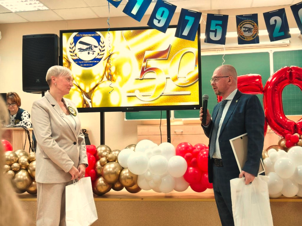 Сотрудники ФБУЗ «Центра гигиенического образования населения» Роспотребнадзора поздравили школу с юбилеем и вручили памятные подарки.