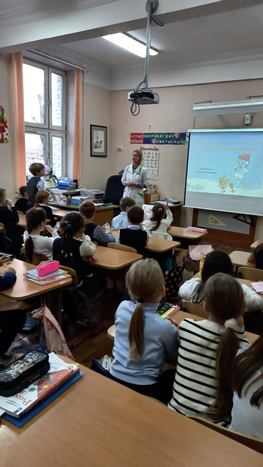 15 ноября 2023 года в ГБОУ города Москвы «Школа № 1288 имени Героя Советского Союза Н.В. Троян» были проведены уроки здоровья со школьниками 3-х классов на темы: «Личная гигиена, режим дня и правильное питание школьника». Занятие проводила врач-методист «Центра гигиенического образования населения» Роспотребнадзора Анастасия Владимировна Шалунова.
