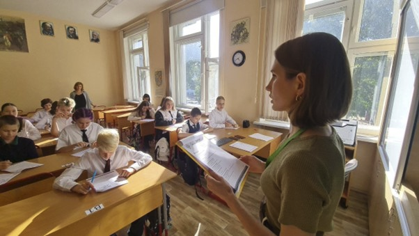 Заместитель заведующего отделом санитарно-гигиенического воспитания и обучения по вопросам профилактики инфекционных и паразитарных заболеваний Филиппова Наталья Витальевна рассказала учащимся 7-го класса о Всероссийской акции «Диктант здоровья» и озвучила вопросы диктанта.