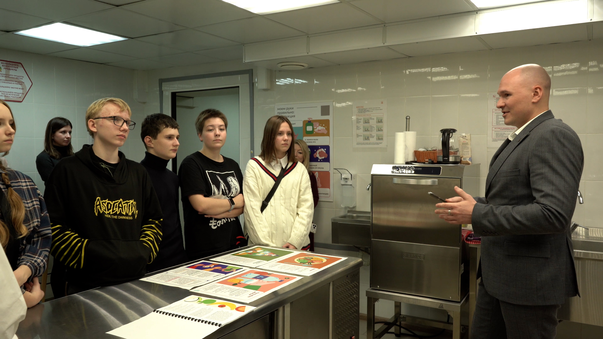 Заведующий организационно-методическим отделением, врач по гигиеническому воспитанию Денис Алексеевич Делицын в «Лаборатории здорового питания» рассказал учащимся о здоровом образе жизни, основных принципах здорового питания, качестве и безопасности пищевых продуктов, а также о реализации национального проекта «Демография» федерального проекта «Укрепление общественного здоровья».