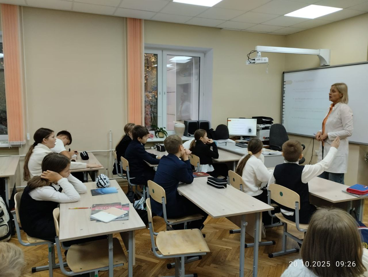 20 октября 2025 года в ФГБОУ СОШ №1699 Управления делами Президента Российской Федерации врач - методист ФБУЗ «Центр гигиенического образования населения» Роспотребнадзора Анастасия Владимировна Шалунова провела урок здоровья для учащихся 5 класса о вреде курения «Курение или здоровье - сделайте правильный выбор!».