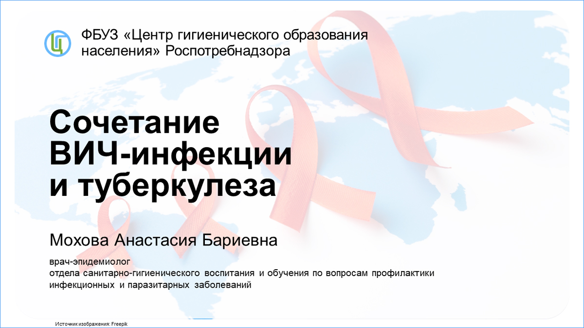 24 марта 2026 года специалисты ФБУЗ «Центр гигиенического образования населения» Роспотребнадзора Наталья Филиппова и Анастасия Мохова провели вебинар, приуроченный к Всемирному дню борьбы с туберкулезом, который, по решению Всемирной организации здравоохранения, ежегодно отмечается 24 марта. На вебинаре были освещены две актуальные темы: «Мифы о туберкулезе» и «Сочетанное течение ВИЧ-инфекции и туберкулеза».