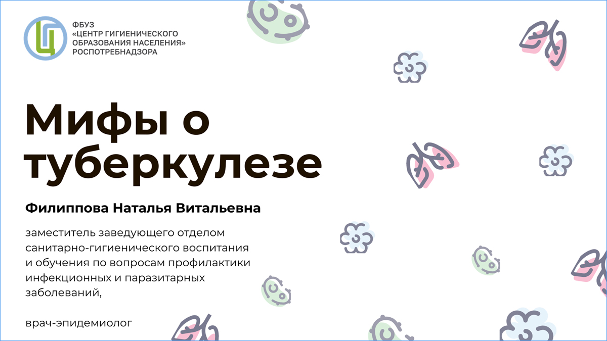 В первой части вебинара врач-эпидемиолог Наталья Витальевна Филиппова рассказала о наиболее распространенных мифах, связанных с туберкулезом: