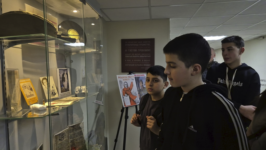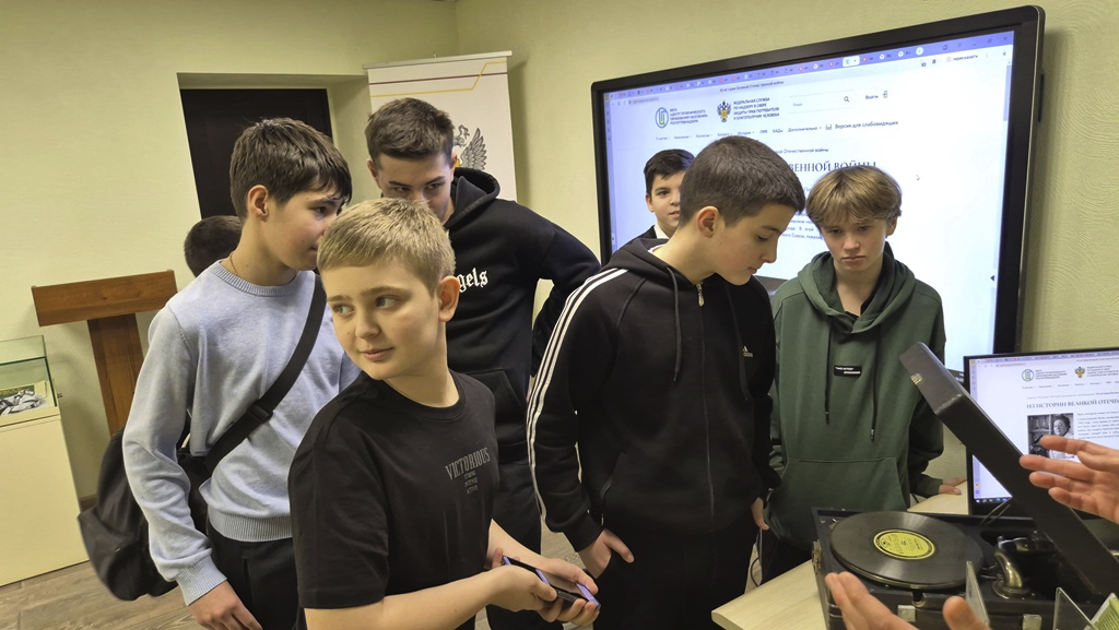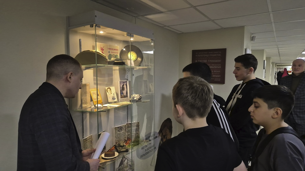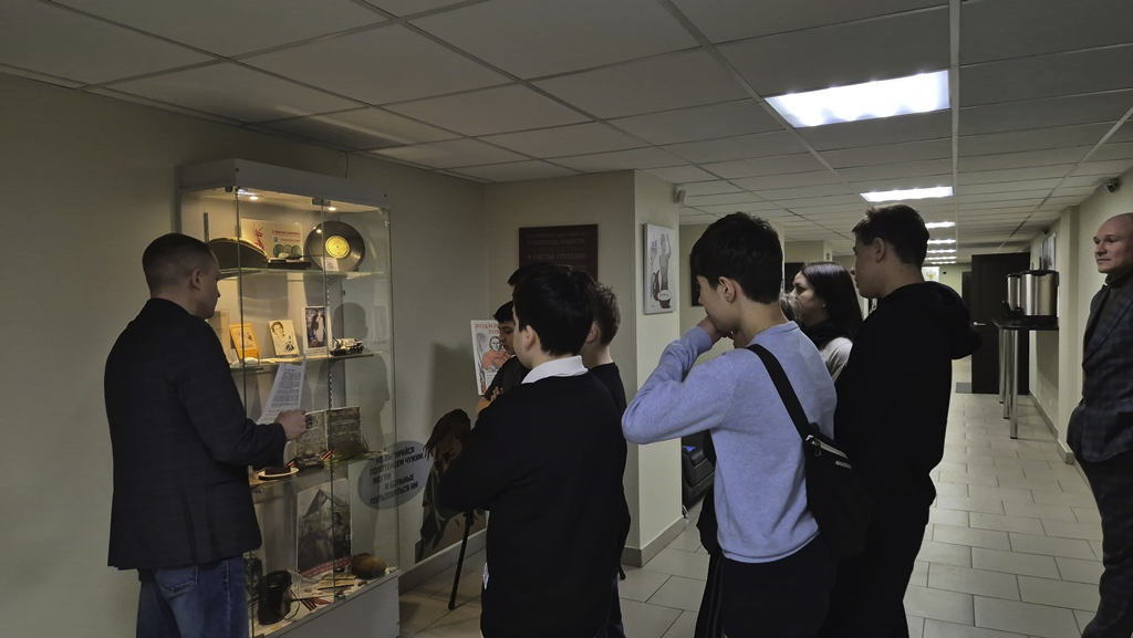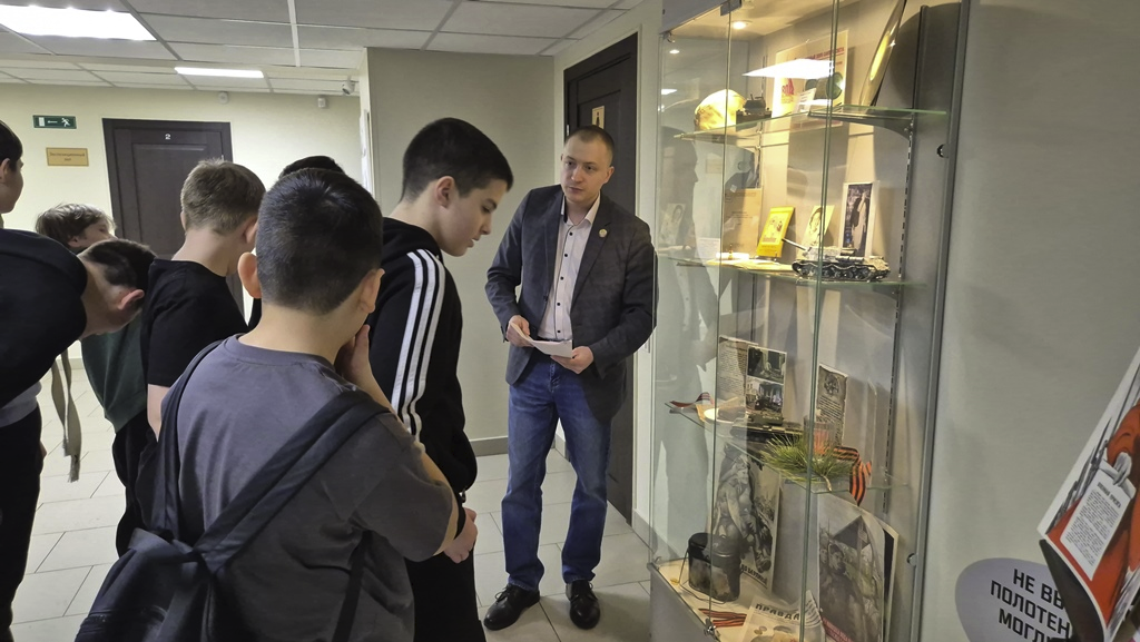 Аркадий Юрьевич Юдин, врач по общей гигиене и эпидемиологии, познакомил ребят с выставкой, посвященной 80-летию победы в Великой Отечественной войне.