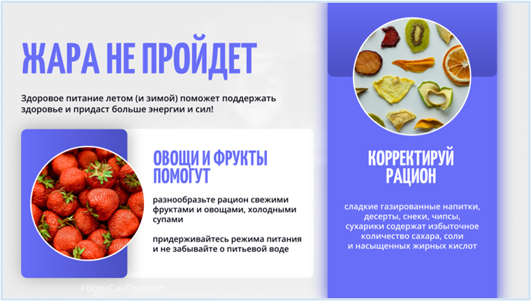 28 мая 2025 года ФБУЗ «Центр гигиенического образования населения» Роспотребнадзора принял участие в тематическом общегородском онлайн совещании Экспертно-консультативного совета родительской общественности при Департаменте образования и науки города Москвы. Заведующий отделением санитарно-гигиенического воспитания и обучения по вопросам здорового питания Александр Александрович Гаврилин выступил с докладом о том, как грамотно охлаждаться в жару. Полная запись выступления доступна по ссылке.