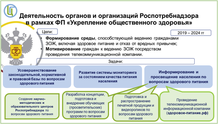 В своем выступлении Александр Александрович коснулся важнейших аспектов массовой агитационной и информационной работы по санитарному просвещению населения по вопросам здорового питания и отказа от вредных привычек. Были представлены результаты информирования, которое проводилось Роспотребнадзором, его органами, подведомственными организациями и научными центрами по вопросам здорового питания в 85 субъектах Российской Федерации с 2019 по 2024 годы.