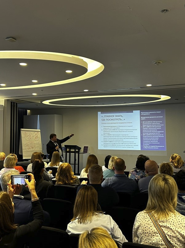 В своем выступлении Александр Александрович осветил вопросы осуществления государственного санитарно-эпидемиологического надзора (контроля) в отношении служб питания в отелях и санаториях. Особое внимание было уделено основным причинам возникновения пищевых отравлений и часто встречающимся нарушениям санитарного законодательства в сфере гостеприимства и общественного питания. Были показаны доступные ресурсы профилактического характера, помогающие предприятиям обеспечить должный уровень санитарно-эпидемиологического благополучия и безопасности для потребителей услуг.