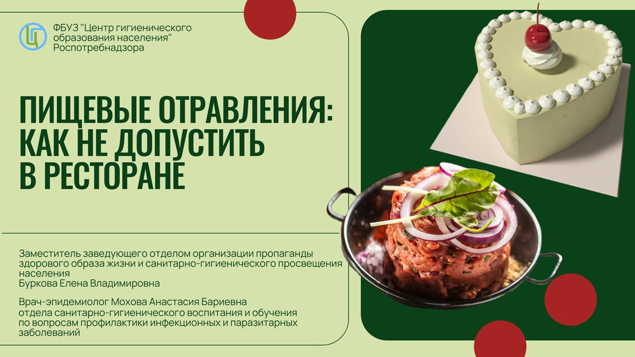 29 января 2026 года специалисты ФБУЗ «Центр гигиенического образования населения» Роспотребнадзора Елена Буркова и Анастасия Мохова провели вебинар на тему «Пищевые отравления: как не допустить в ресторане».
