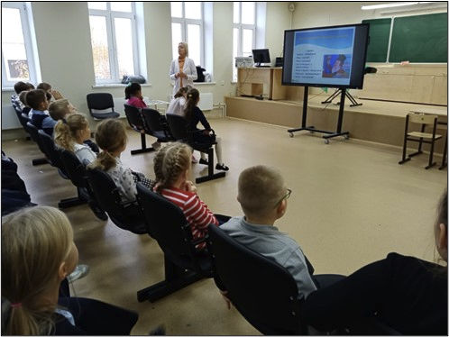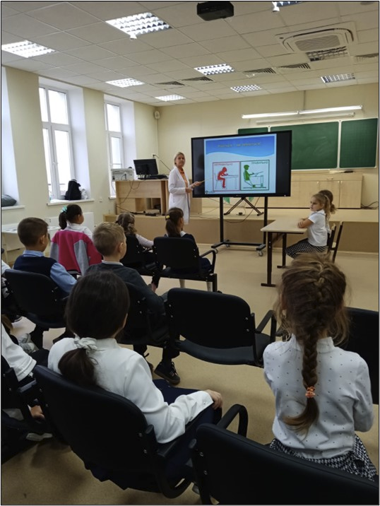 На уроке вместе с детьми Анастасия Владимировна разобрала вопросы режима дня, личной гигиены, правильного питания, вредных привычек и физической активности. Школьники узнали, что такое здоровье, и что необходимо ежедневно делать и соблюдать, чтобы быть здоровым.