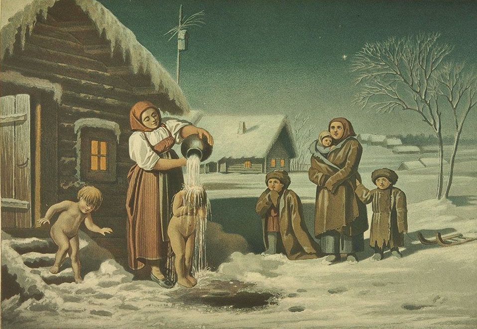 Девушки, дети и старики, которые не могли дойти до бани, купались в печи или их купали в воде, подогретой на печи. Русская печка была предусмотрена не только для того, чтобы кормить всю семью, но и для того, чтобы принимать гигиенические процедуры.