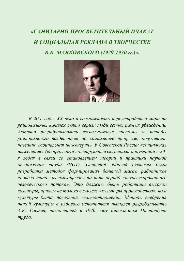 «Санитарно-просветительный плакат и социальная реклама в творчестве В.В. Маяковского (1929-1930 гг.)»