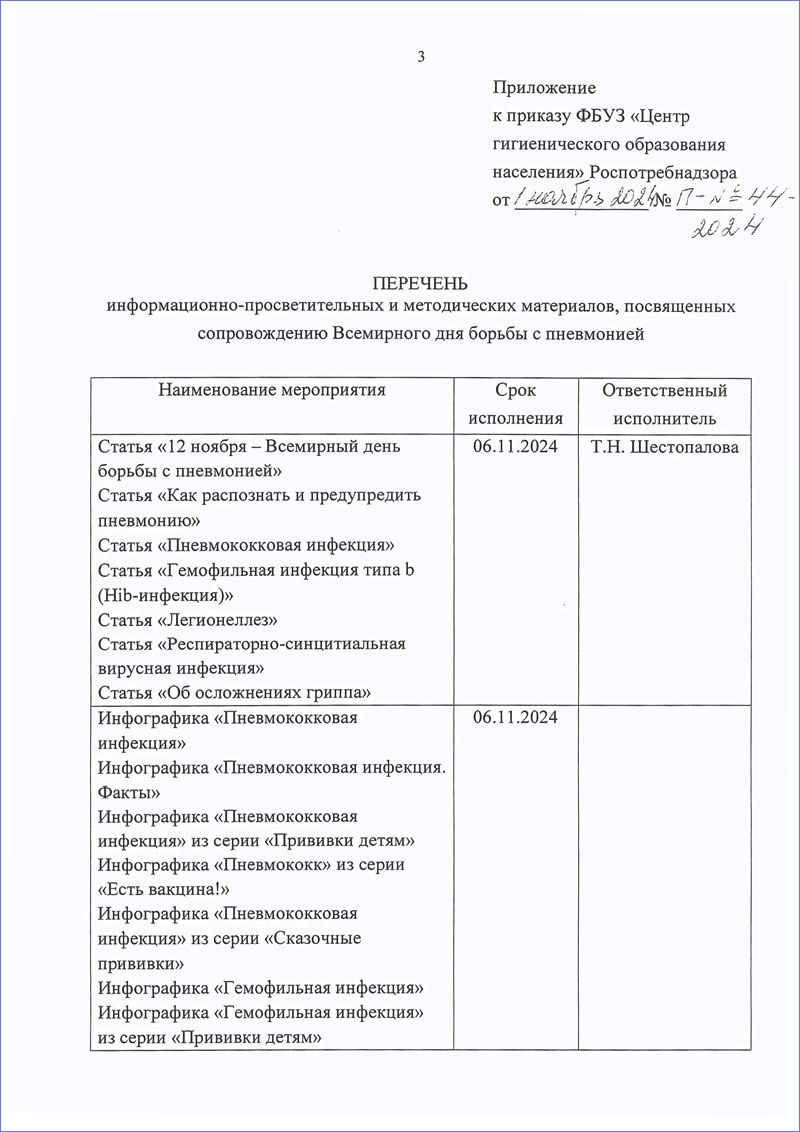 ФБУЗ «Центр гигиенического образования населения» Роспотребнадзора в целях оказания практической и методической помощи специалистам органов и организаций Роспотребнадзора и медицинских организаций в сфере организации и проведения информационно-разъяснительной работы среди населения по вопросам профилактики инфекционных заболеваний и иммунопрофилактики вакциноуправляемых инфекций подготовил информационно-просветительные и методические материалы, посвященные сопровождению Всемирного дня борьбы с пневмонией.