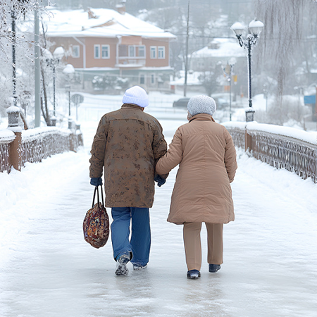 Будьте осторожны во время ходьбы в гололёд. Подскальзывания и падения — одни из самых распространённых причин зимних травм.
