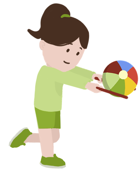 Предложите детям с помощью гимнастических палок подхватить и удержать мяч на весу, пробежав с ним от старта до финиша. Когда дети научатся уверенно управляться мячом, можно провести эстафету.